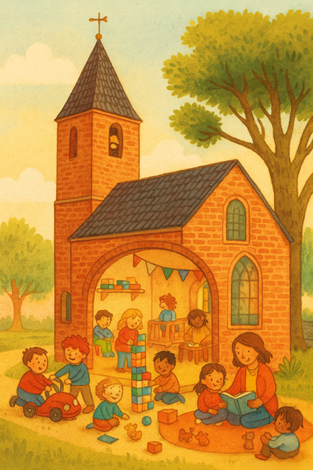 Tijdens de morgendiensten is er op aanvraag kinderoppas.